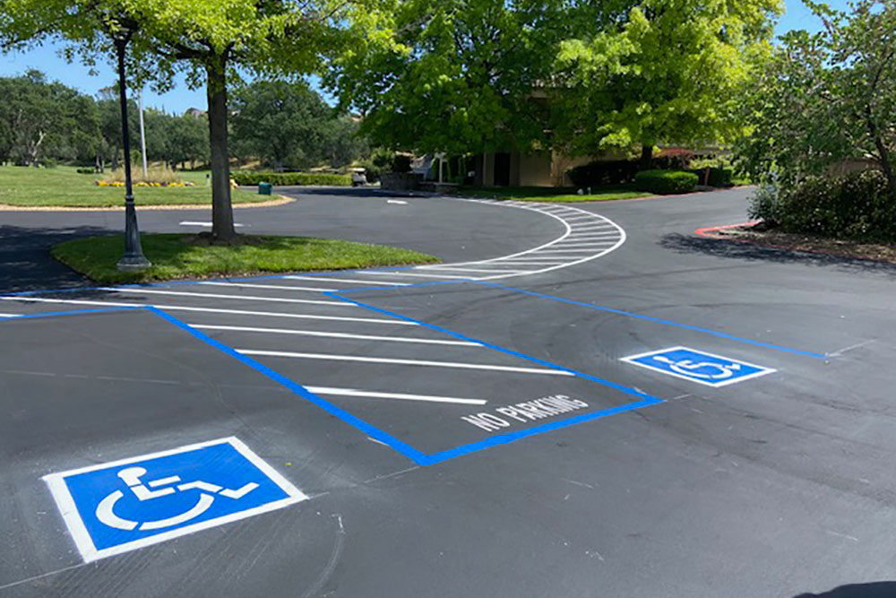 At Sierra Nevada Sealcoating Inc., we specialize in ADA-compliant parking lot striping and signage solutions tailored to meet current federal, state, and local regulations. From accessible parking spaces and van-accessible stalls to crosswalks and clear directional signage, we help you create a layout that’s safe, functional, and up to code.
